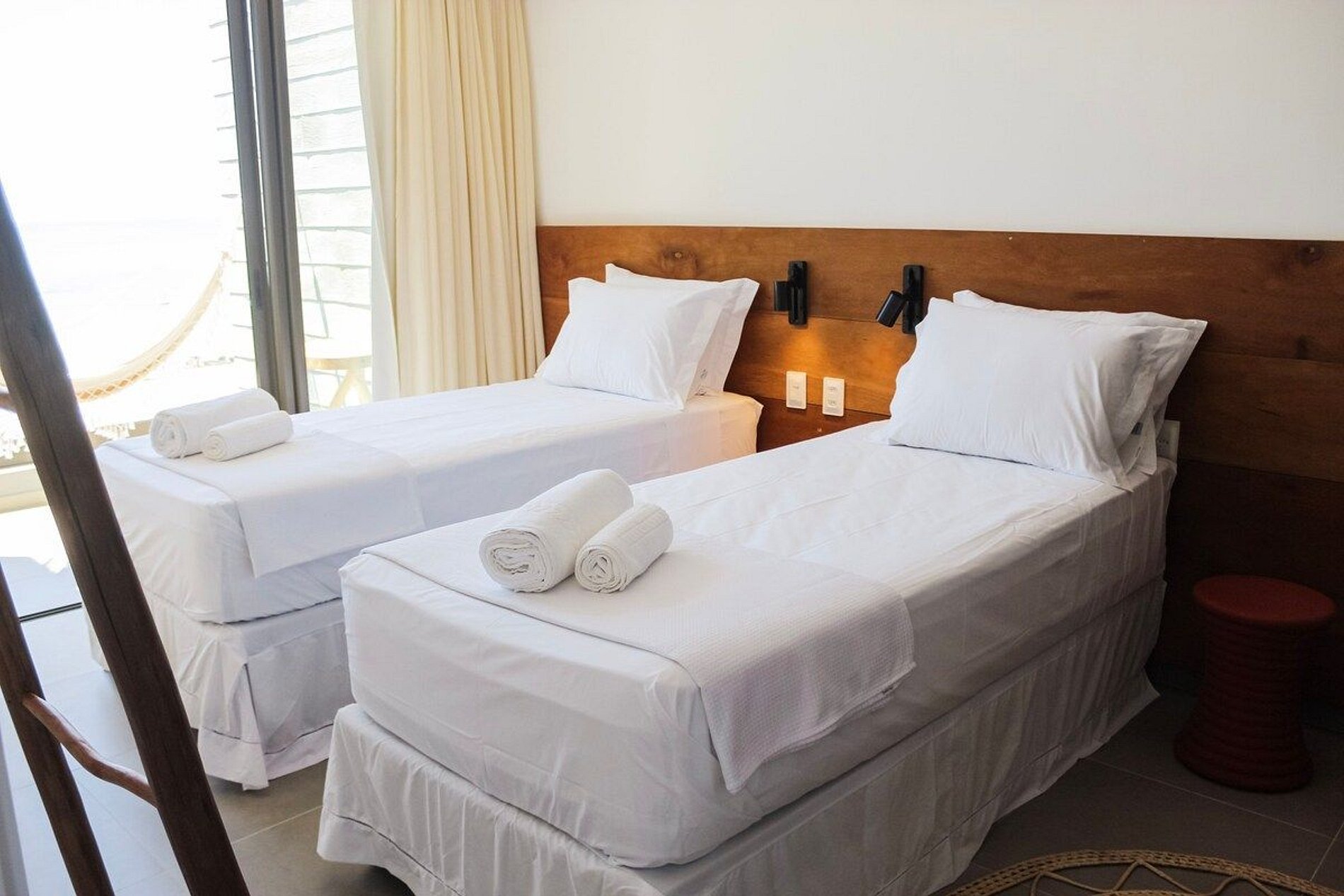 São 3 suítes, todos com ar condicionado e TV Smart, acomodando até 9 pessoas. A cozinha é equipada com tudo que precisarão para sua estadia, logo ao lado da sala com TV smart e sofá. A churrasqueira elétrica e a cervejeira ficam na varanda, com uma vista belíssima para piscina e para praia de marceneiro.