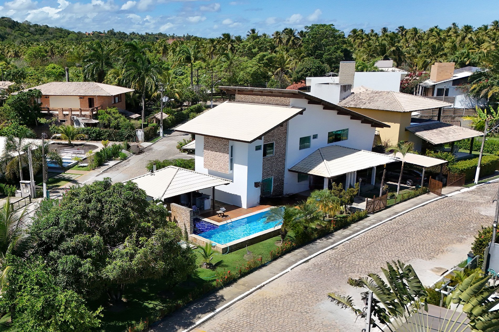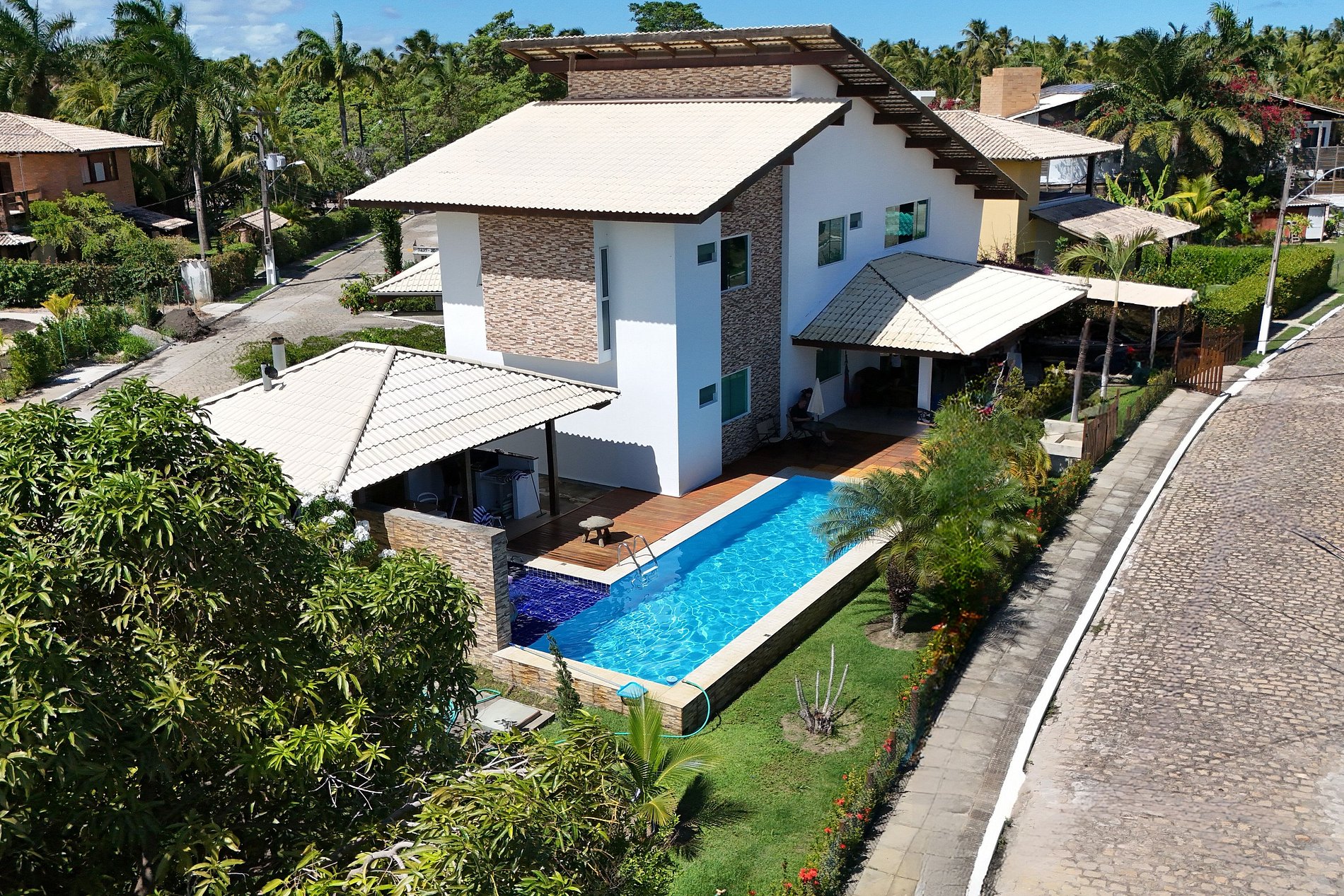 Descubra a Casa Branca, um refúgio moderno e aconchegante, localizado no Residencial Angra de Ipioca, condomínio à beira-mar com acesso privativo à praia e segurança 24h. A passagem para a praia fica ao lado do Hibiscus Beach Club, clube de praia conhecido da região. A casa oferece uma ampla área externa com piscina, cascata, churrasqueira e forno de pizza, e uma linda área verde.