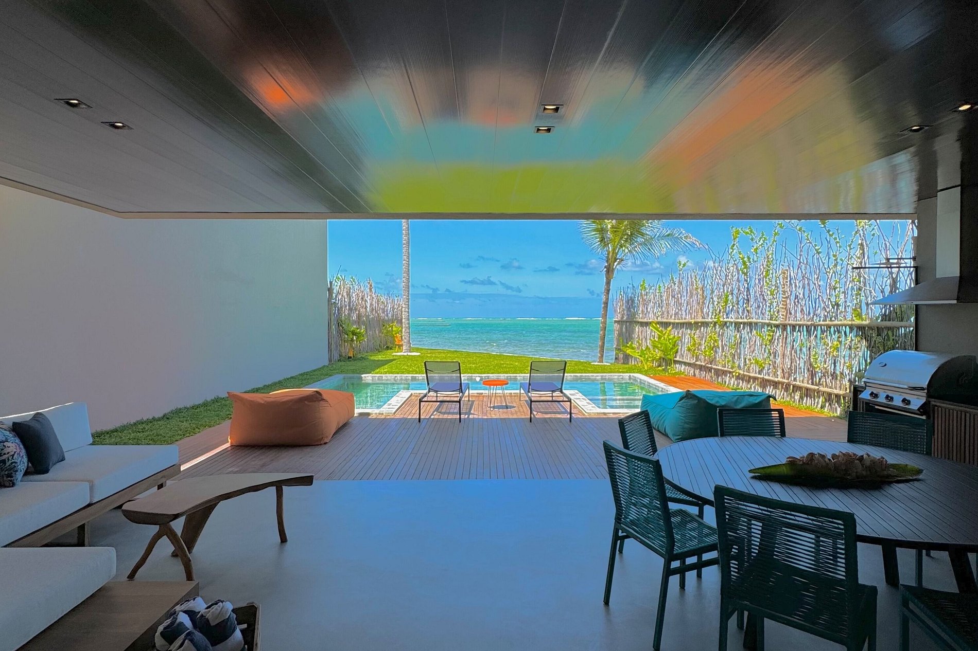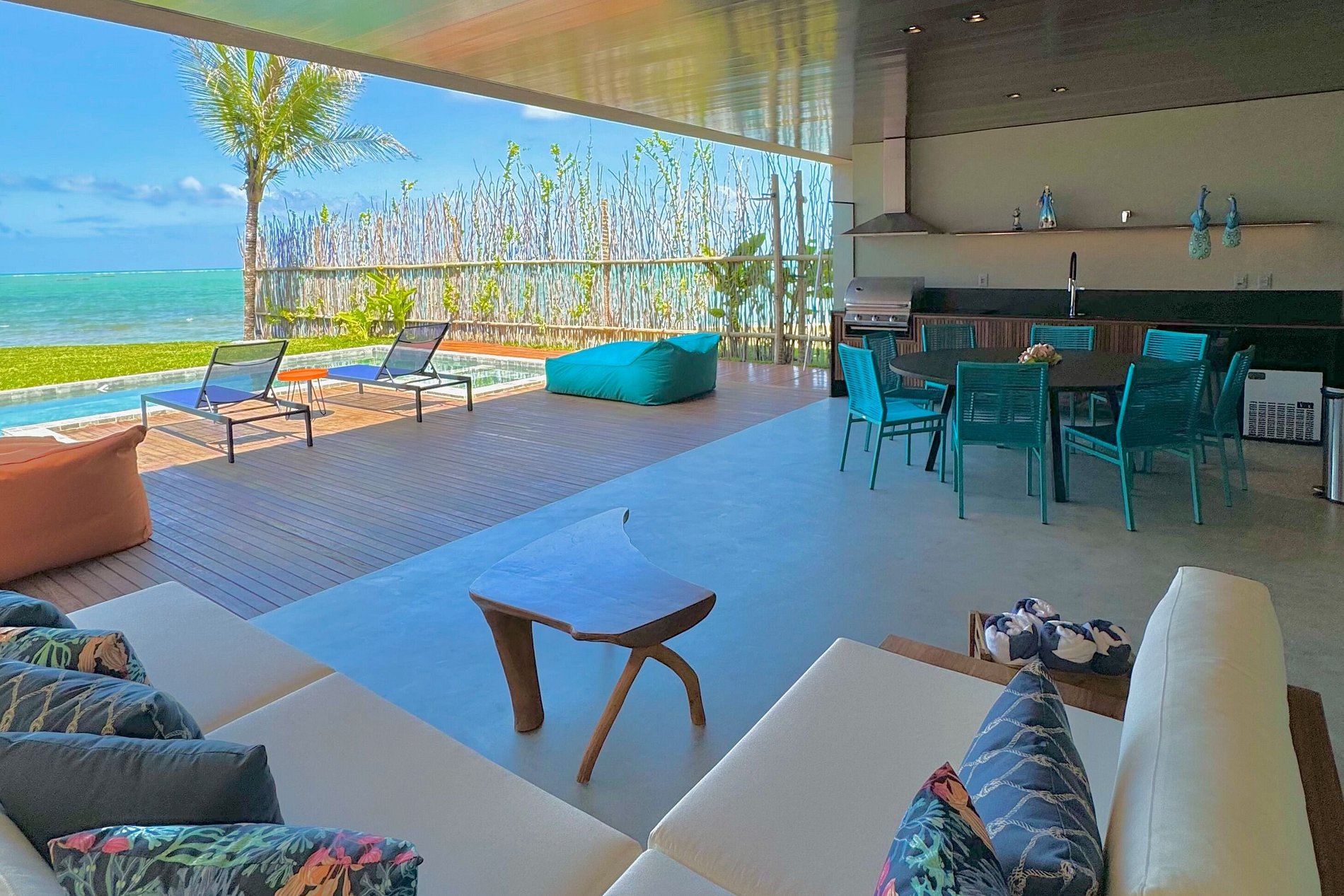 Destaque exclusivo da casa: o rooftop com uma vista panorâmica de tirar o fôlego para o mar de Milagres. Uma experiência única e o cenário perfeito para contemplar um pôr do sol inesquecível.