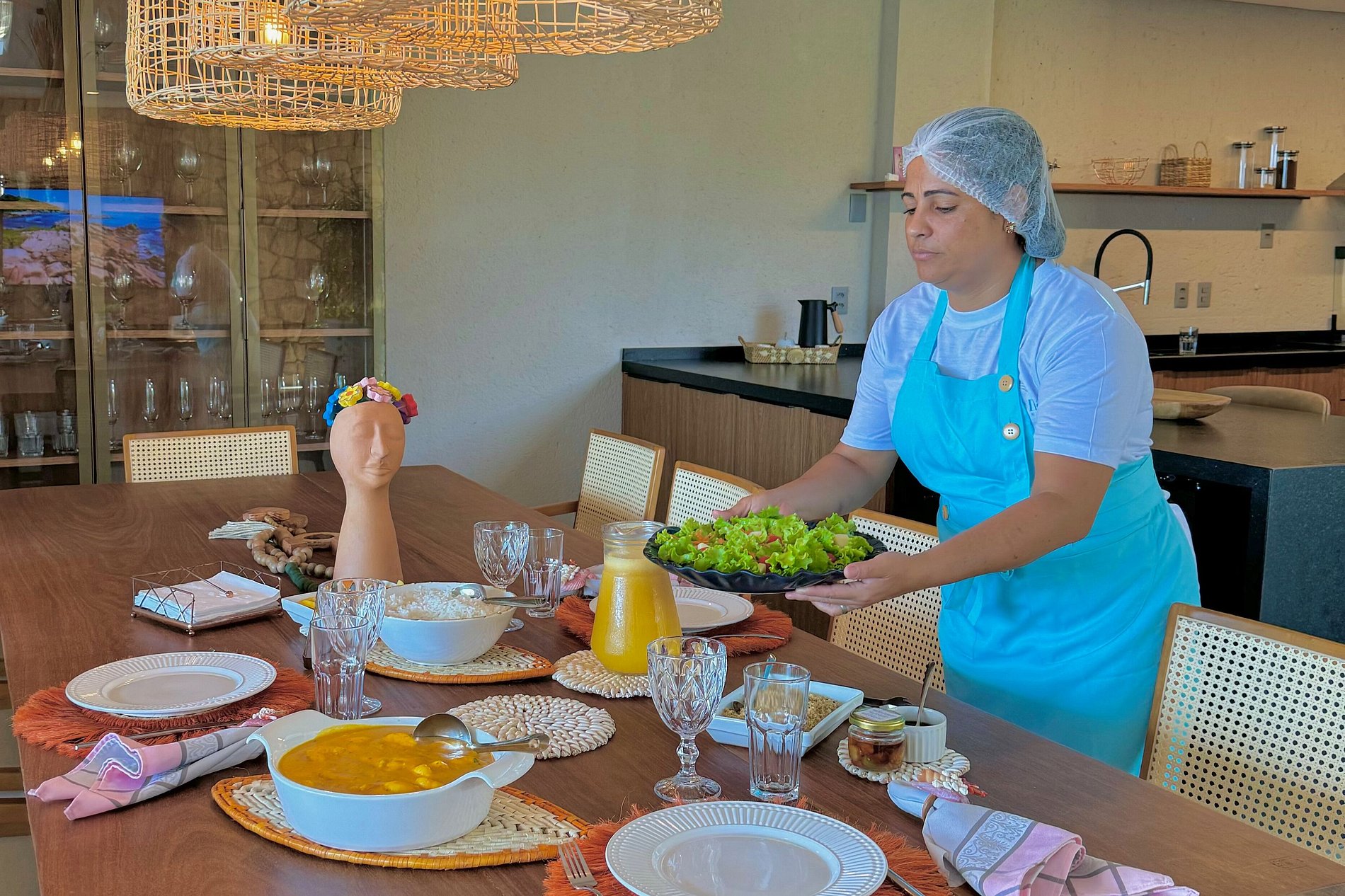 A casa conta com duas funcionárias dedicadas à limpeza, manutenção e cozinha, responsáveis por preparar café da manhã, almoço e petiscos, permitindo que aproveite cada momento sem preocupações.